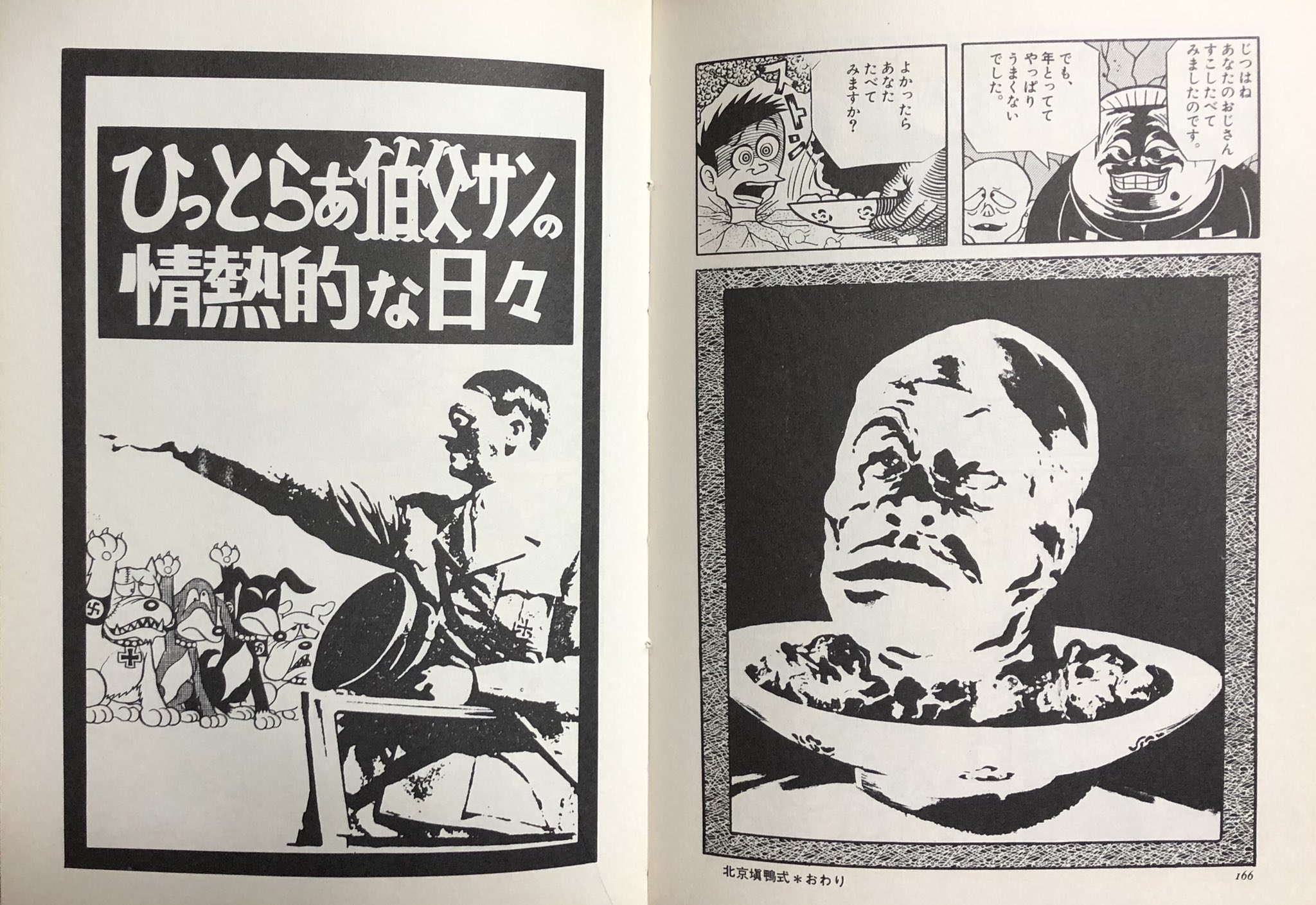 Jul 28, 15 · 7月29日はアドルフ・ヒットラーが国家社会主義ドイツ労働者党(ナチス)党首に就任した日 『ひっとらぁ伯父サン』を読もう! きょうのマンガ きょうのマンガ ビッグコミック ひっとらぁ伯父サン 藤子不二雄aひっとらぁ伯父サン 藤子不二雄ブラックユーモア傑作集 藤子不二雄著 (サンミリオンコミックス) 朝日ソノラマ, タイトル読み ヒットラァ オジサン フジコ フジオ ブラック ユーモア ケッサク『ひっとらぁ伯父サン』(ひっとらぁおじサン)は、藤子不二雄 Ⓐ による日本の読切 漫画作品。ブラックユーモア短編の1作。 1969年『ビッグコミック』4月1日号(小学館)に掲載。 1971年に朝日ソノラマから発行された、短編作品集の表題ともなった。 物語 平和な街に、突如として正体